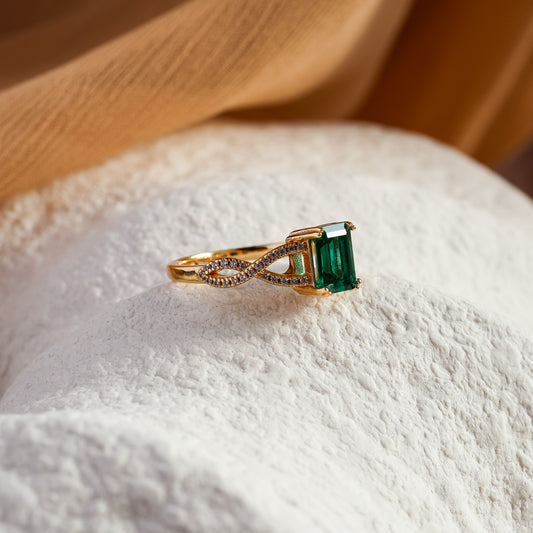 Lara Genuine Emerald Intertwined Ring (Gold/Silver)