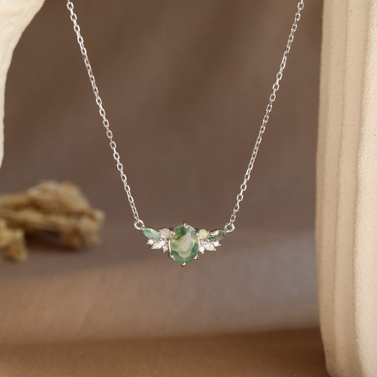 Eira Natural Moss Agate Necklace 14K Gold Vermeil