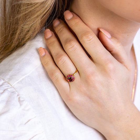 DEVOTION Garnet and Ruby Halo Ring