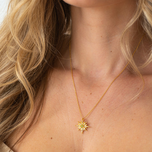 Natural Opal Starburst Gold Necklace - 14K Gold Vermeil