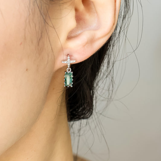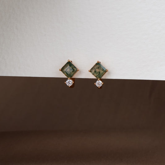 Dewdrop Moss Agate Huggie Earrings 14K Gold Vermeil