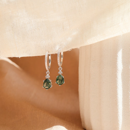 Layla Moss Agate Hoop Earrings Gold/Silver