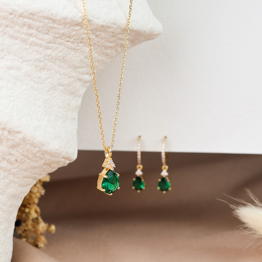 Anya Emerald Drop Earrings 14K Gold Vermeil