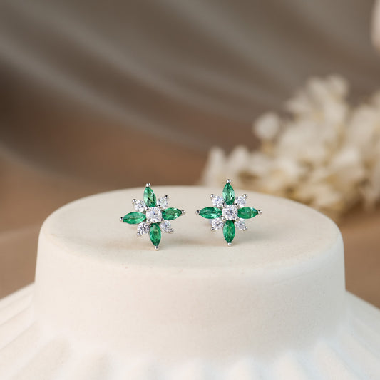 Eliza Clover Genuine Emerald Earrings 14K Gold Vermeil