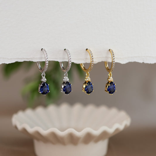 Layla Blue Sapphire Hoop Earrings 14K Gold Vermeil