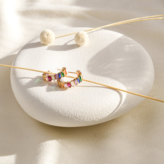 Rainbow Hoop Earrings - 14K Gold Vermeil