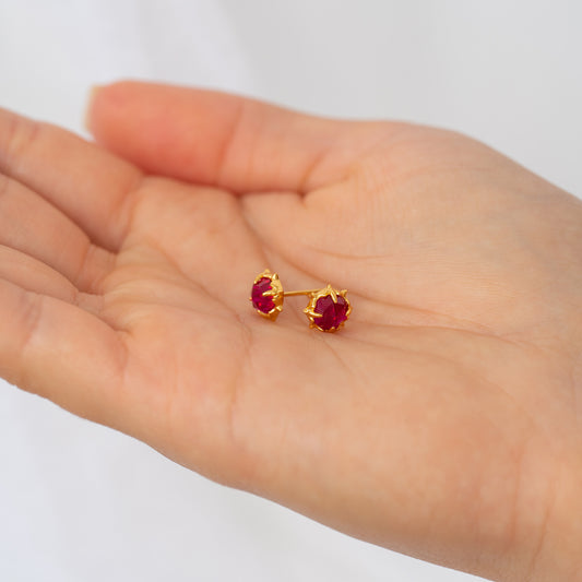 Layla Genuine Lab Ruby Hoop Earrings 14K Gold Vermeil