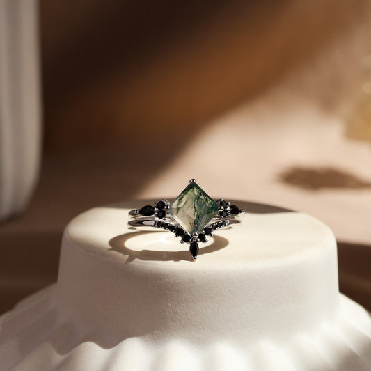 Selene Natural Moss Agate Ring 14K Gold Vermeil / Sterling Silver