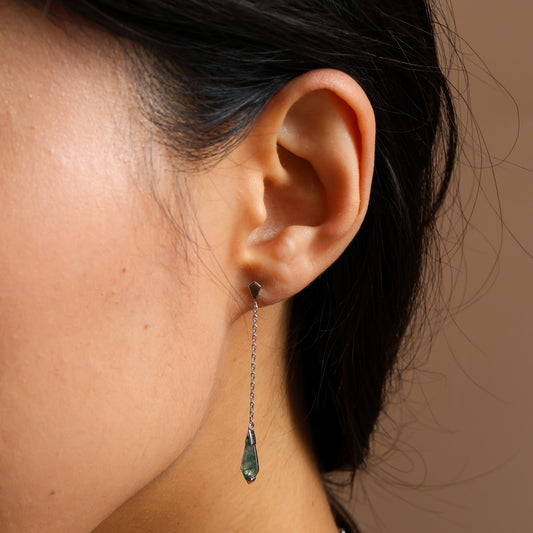 Dewdrop Moss Agate Huggie Earrings 14K Gold Vermeil