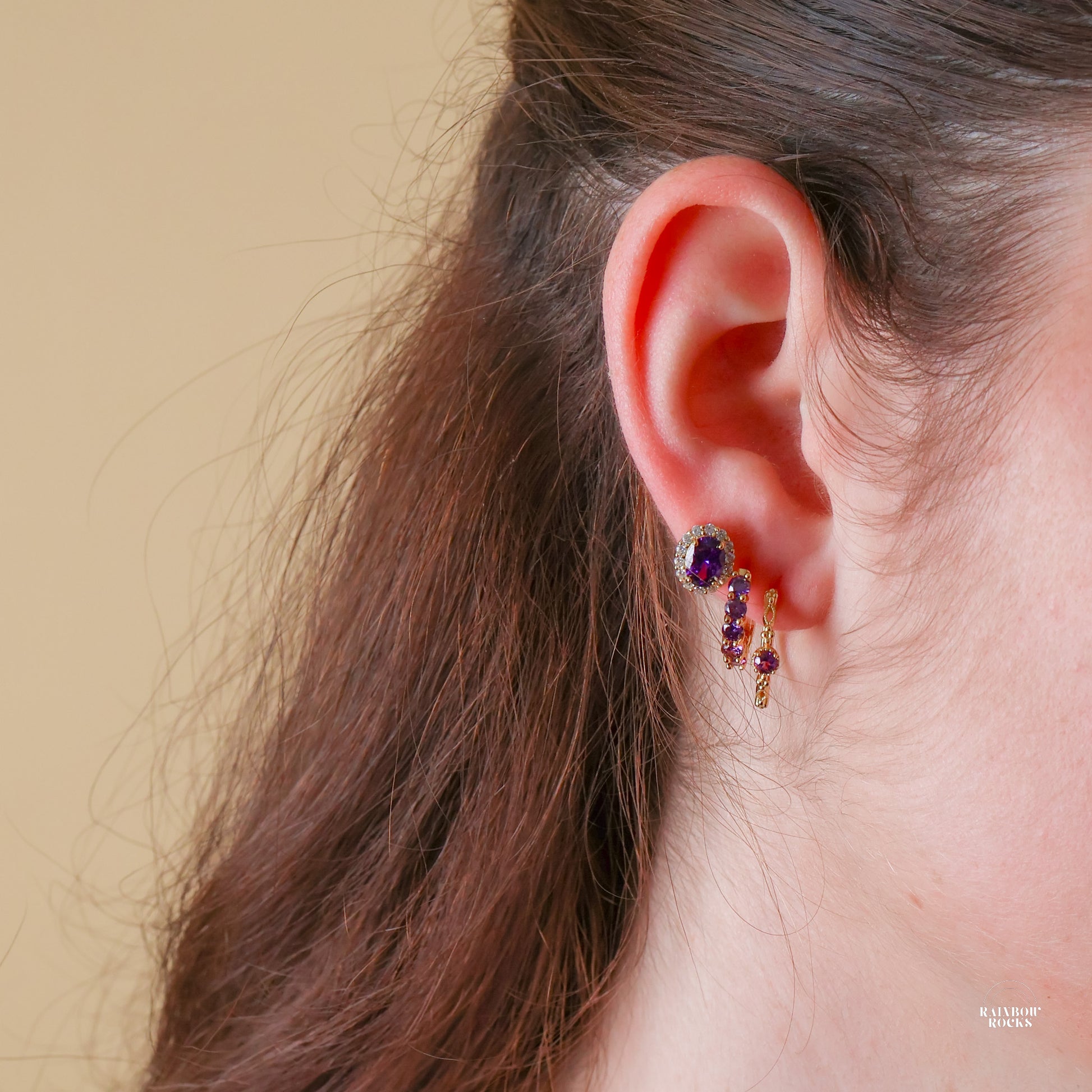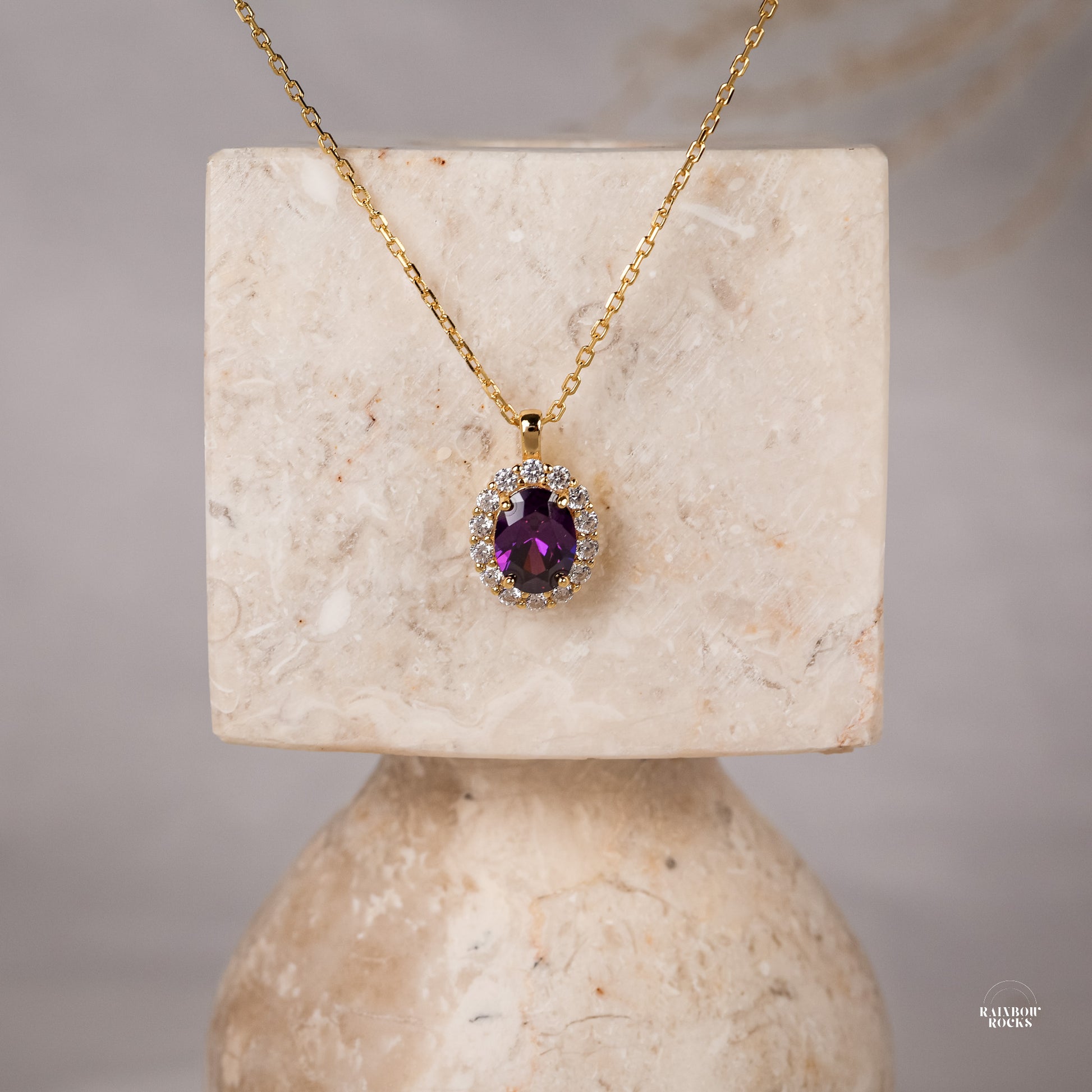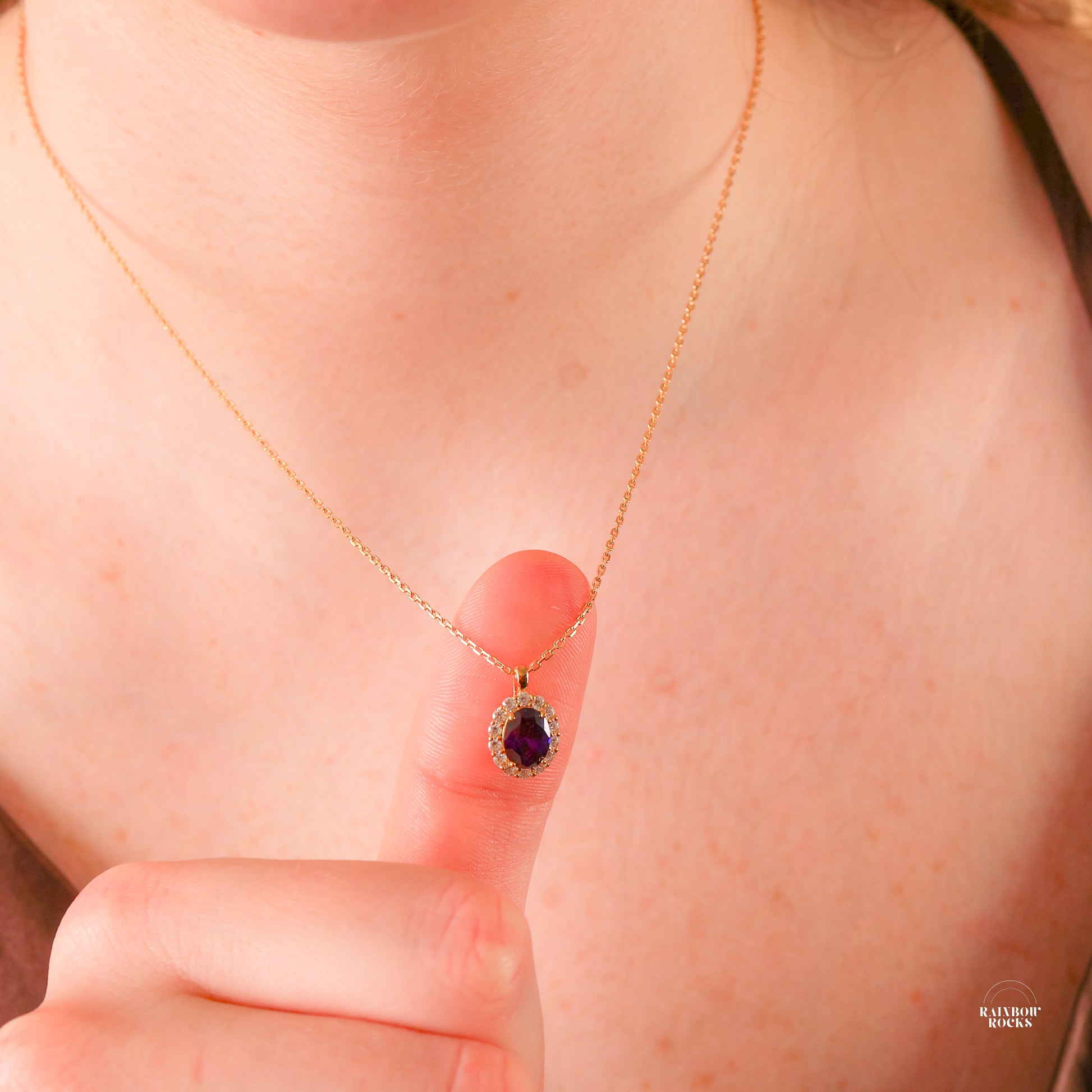 This stunning amethyst birthstone necklace is crafted from sterling silver with a luxurious white gold or 14K yellow gold finish, offering timeless elegance and radiant sparkle. The vibrant coloured cz stones, set in a delicate halo design, glows with a rich violet hue that symbolises calm, clarity, and inner strength — making them perfect for everyday wear or special occasions. The sterling silver base ensures lasting durability and hypoallergenic comfort. Whether chosen as a meaningful February birthstone gift or a personal treat, these elegant amethyst earrings are a beautiful and versatile addition to any jewellery collection.