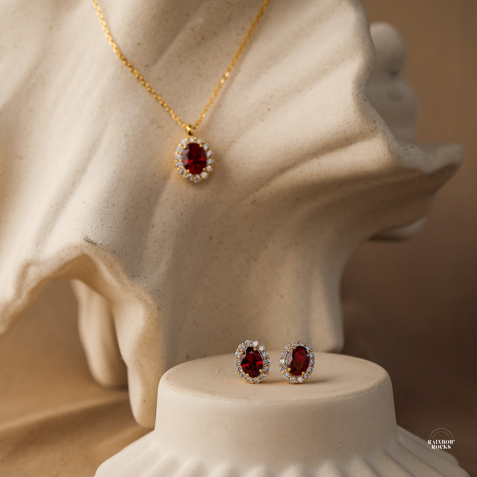 Centre stone: 8x6mm (pendant); 5x6mm (Earring)