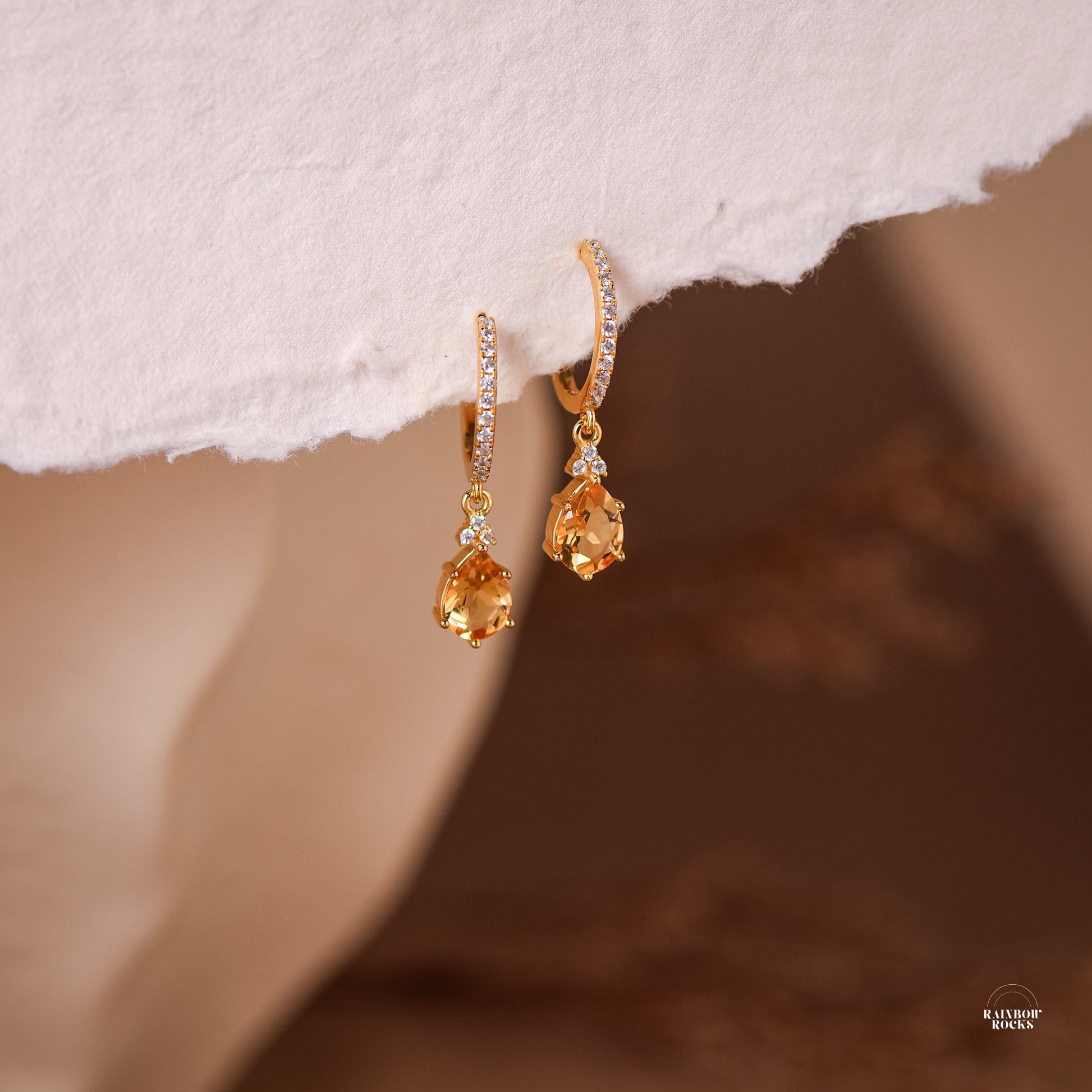 Our Natural Citrine Teardrop Necklace & Earrings Set is a radiant celebration of warmth, light, and effortless elegance. Featuring genuine pear-cut citrine gemstones with golden honey tones, each piece is delicately finished with sparkling pavé accents and set in your choice of 14K gold vermeil or sterling silver. The faceted citrine catches the light beautifully, creating a soft glow that flatters every skin tone.
